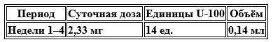 1 единица (0,01 мл) = 0,167 мг (167 мкг) общей смеси